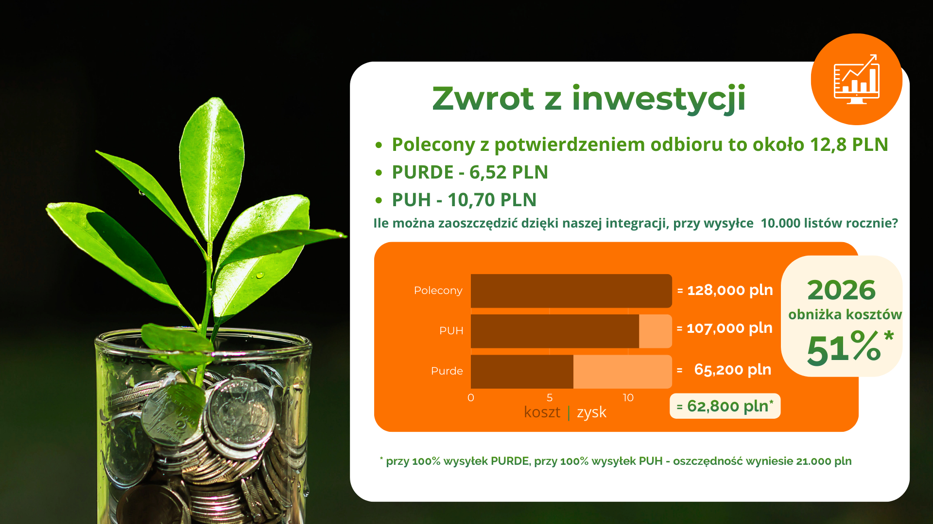 Przy prostej symulacji: wysyłka 10 000 szt. korespondencji może przynieść nawet 62 000 złotych oszczędności.